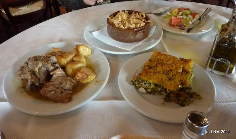 Все было очень вкусно и дешево, но рекламировать не буду по двум причинам: 1) Это второй раз в Греции, когда приносят воду в бутылках вместо того, чтоб налить в кувшинчик - и я уже объясняла, почему это не есть хорошо 2) на фото предлагаемых блюд в меню было в два раза больше еды, чем получилось в натуре. Хотя для организма это как раз оказалось хорошо и необременительно.