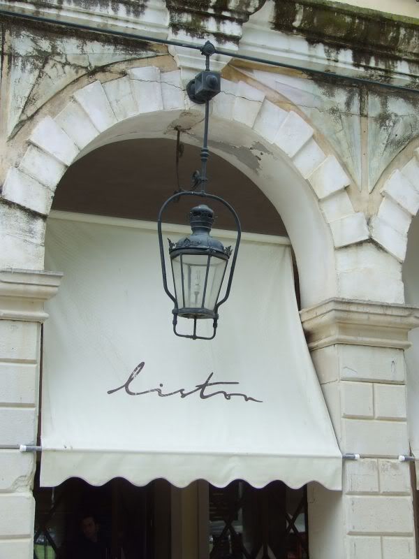 История названия - замечательная! Оказывается, венецианцы вели список («лист») знатных семейств в т.н. «золотой книге» (Libro d'Oro). И здесь разрешалось гулять только тем, кто значился в этом списке. А теперь, понимаешь, кто ни попадя может себе позволить выпить здесь чашку самого дорогого кофе на острове, если не во всей Греции.