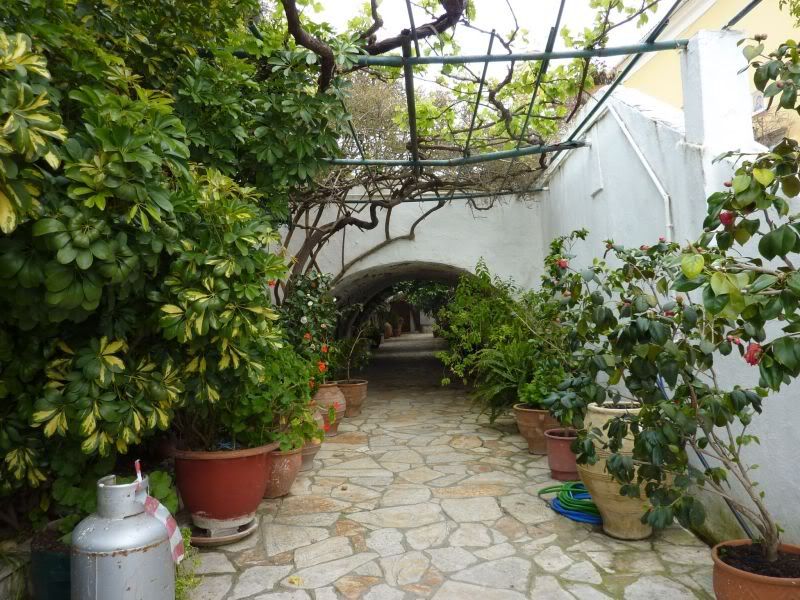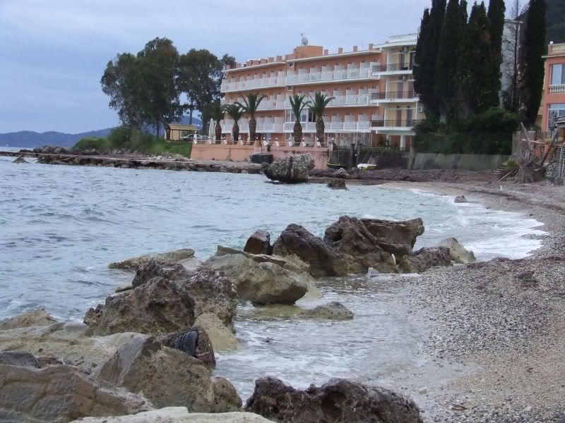 И рядом с кондитерской - наконец-то отель. В отеле примерились к номеру (не бог весть, но с лифтом, 95 на троих) и получили-таки карту города. По которой благополучно нашли машину и поехали селиться в деревню Беницес (14 км от Корфу-городка), чтоб не толкаться в городе. Опять же, Ахиллеон завтра надо смотреть? А это примерно в той же стороне.