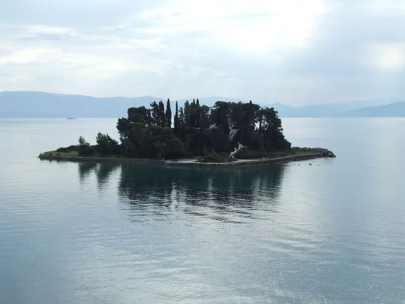 Сегодня покидаем Корфу. По дороге в порт заехали поглядеть на Понтиконисси (Мышиный остров). Вот странно. Вроде это визитная карточка Корфу, а в ДК не упоминается. В Мишлене да, но не в индексе и мелким текстом, поэтому найти невозможно. Однако в натуре отыскать его оказалось легко и гулять там просто кайф. Зато потом, когда я решила разобраться, где Понтиконисси, где Влахерна, где Канони, где остров, где полуостров и откуда куда дамба - это оказалось совсем даже не просто. Теперь, когда разборки позади, просто рвусь поделиться обретенными сведениями с народом.