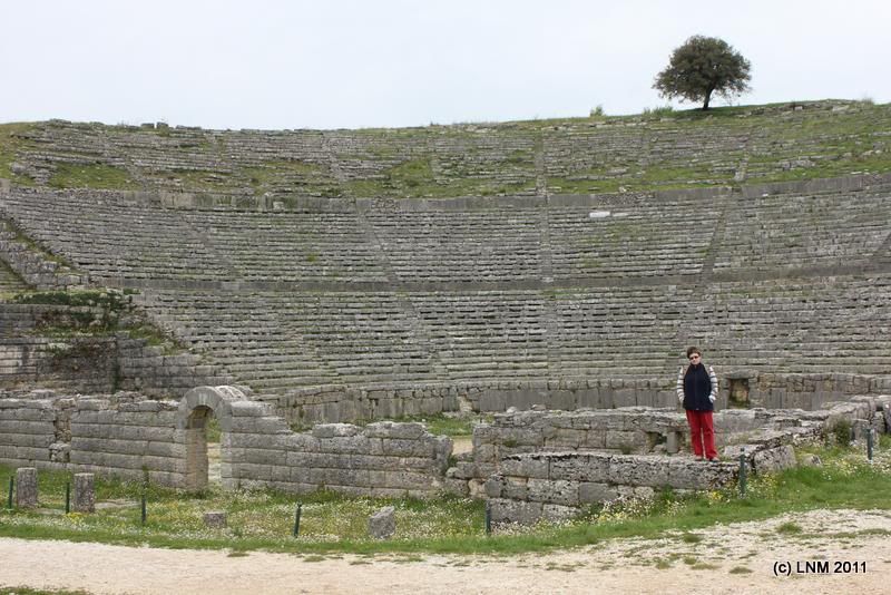 Никаких следов оракула не осталось, только театр. И еще пара развалин, но что-то мы к ним не притянулись. Театр был возвигнут по приказу эпирского царя Пирра - того самого, которого Пиррова победа. Театр, конечно, могучий, на 2 евро тянет только так (щас меня убьют френды-архитекторы, ой).