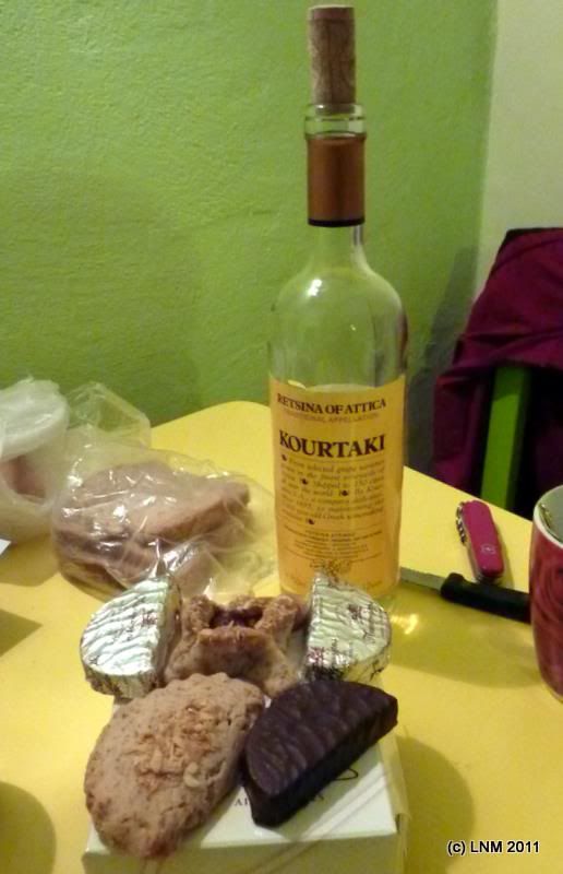 Долго изучали репертуар кондитерской, в результате закупили несколько сладких ништяков и для равновесия - бутылку рецины