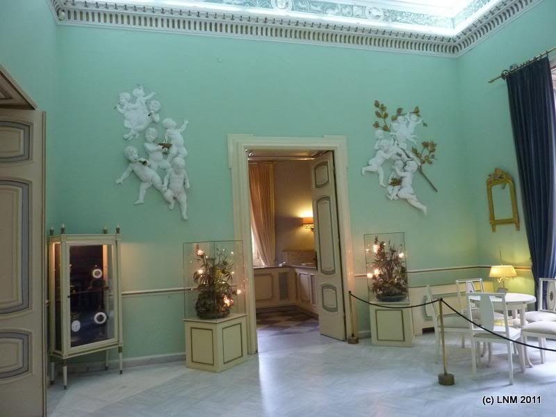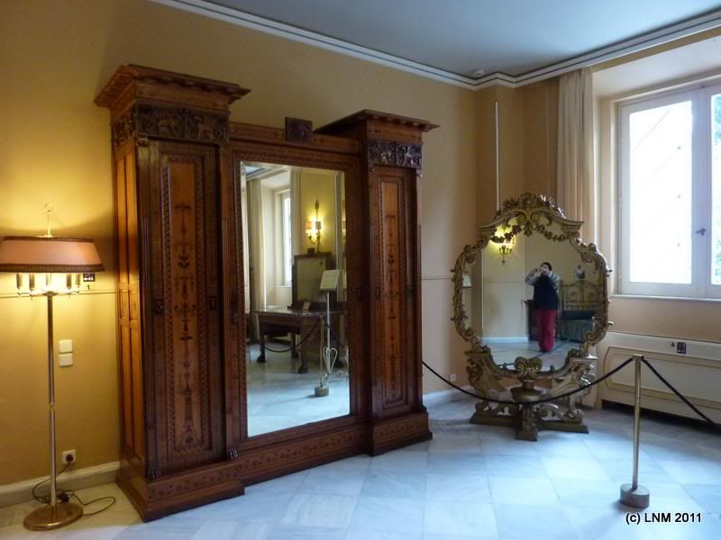 Вообще-то я ихнюю габсбургскую эстетику в гробу видала и до сих пор старалась обходить стороной, но в последнее время даже какое-то чувство истории начало во мне прорезаться, что вот жили же сто лет назад настоящие императоры, и вот прямо таки тут, на этом самом месте, и спали на кроватях, и хранили одежду в шифоньерах... всю мебель не покажу, а то Л. ругается
