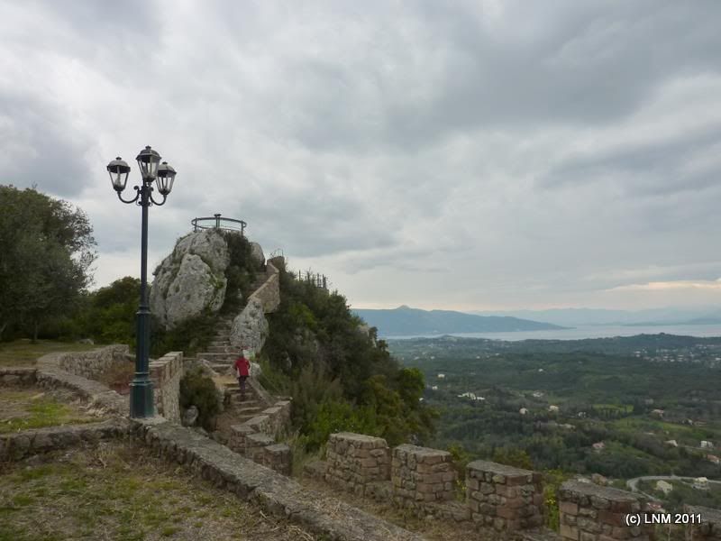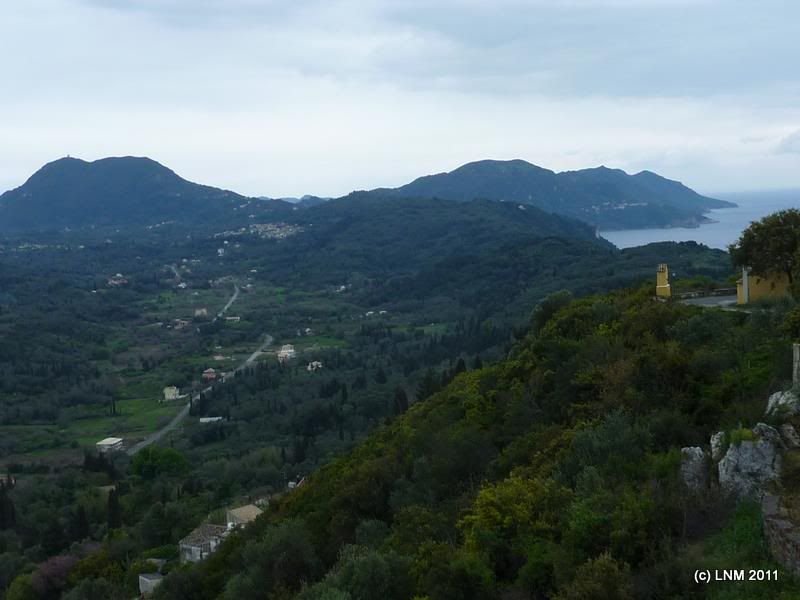 В Мишлене мы вычитали, что если, не доезжая пару км до Палеокастрицы, свернуть на Лаконес, то где-то там (по карте казалось близко) откроется офигительный (splendid) вид. В результате мы долго куда-то взгромождались по опять же серпантину и припарковались возле заброшенной (то ли навсегда, то ли на зиму) таверны «Аполлон». Вид был красивый и свысока, однако рядом с последующим «троном Кайзера» было бы даже странно его здесь помещать. Позже, при разборе полетов, оказалось, что искомая точка (или участок дороги) называется "Белла Виста" (о чем почему-то молчал Мишлен), но какие оттуда должны открываться виды, мне так до сих пор и не понятно.