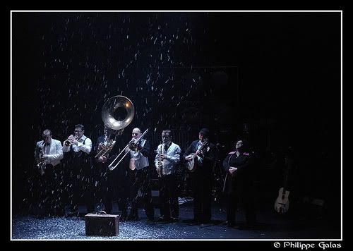 А вот следующая песня у меня была самой-самой любимой, пока я не разобрала до конца ее текст, и это немного грустная история. Обычно-то бывает наоборот, то есть я по-настоящему влюбляюсь в Жюльеттины песни, только прослушав раз пять и разобрав все слова до последнего. А эта меня просто потрясла на концерте, буквально до слез. Когда Жюльетт вышла на сцену с потертым чемоданчиком, и стояла растерянно, а потом запела своим глубоким, волшебным голосом на фоне маленького оркестрика, такого жалкого и трогательного под непрекращающимся дождем, а потом она бросила чемодан посреди сцены и встала рядом с музыкантами, и наконец – этот грандиозный, печальный и скорбный марш в заключение... И с тех пор всякий раз при звуках этой песни слезы честно набегали на глаза, даже не давая возможности вслушаться в слова. И вот я стала переводить и наткнулась на стандартную и банальную мораль – ну ей-богу, не ожидала такого от Жюльетт! Я все же дам эту песню здесь – она потрясающе красива, была бы просто шедевром, если б непонятная сила не загнала Жюльетт в неуместное морализаторство.