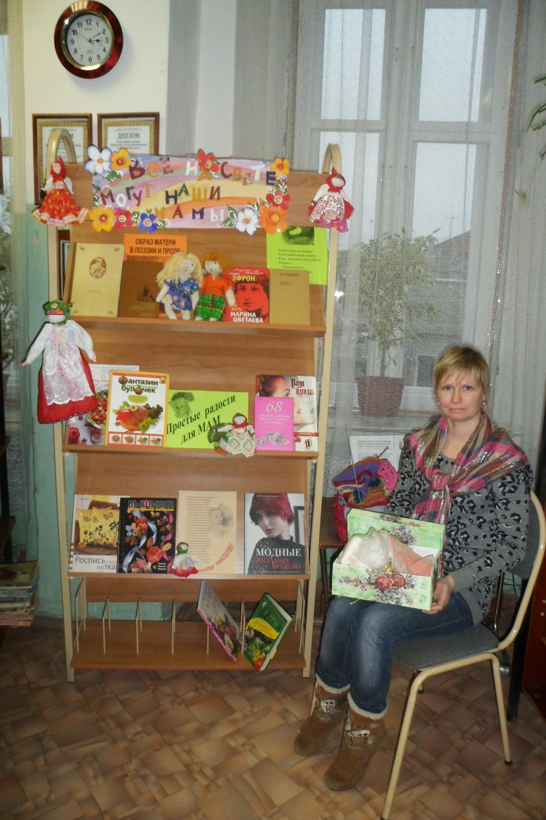 2014-12-03 16:15:00 (читать в оригинале)Каждый год, последнее воскресение ноября мир отмечает День матери. В Центральной библиотеке г. Вышний Волочек к этому Дню была организована красочная выставка и цветочная поляна. На лепестках читатели писали о маме оставляли свои пожелания. А 22 ноября был проведен мастер – класс с детьми и родителями Лицея № 15. Дети своими руками делали подарок ко Дню Матери, создавали чудесную куколку – оберег «Колокольчик» для хороших вестей и отличного настроения. Они также много узнали об истории обереговой куклы. Школьники 2В ушли с подарком для мамы, куклой, сделанной своими руками. Следующая встреча – предновогодняя.