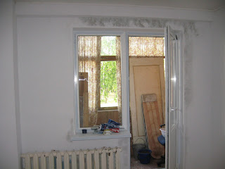 Фотографий советского пиздеца нет, но вот как выглядело после установки нормальной двери и окна на балкон, но до ремонта стен