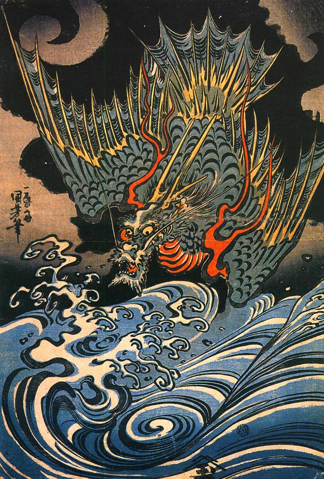 При этом, Куниёси широко использовал достижения западного изобразительного искусства в области перспективы и света.