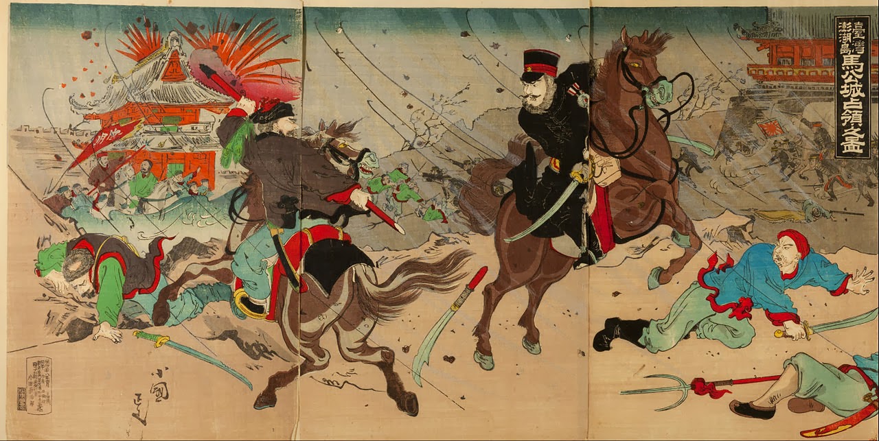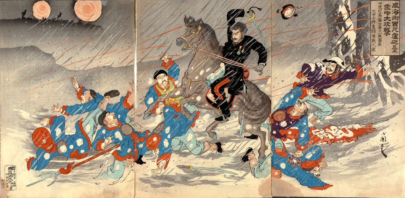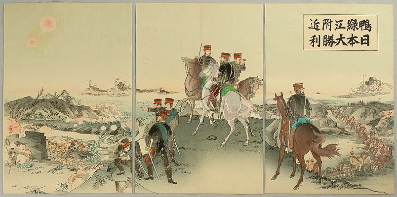 В конце 19-го века особой популярностью у японцев приобретают гравюры на военную тематику.