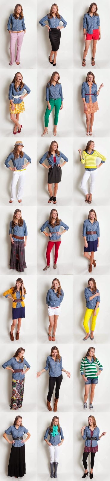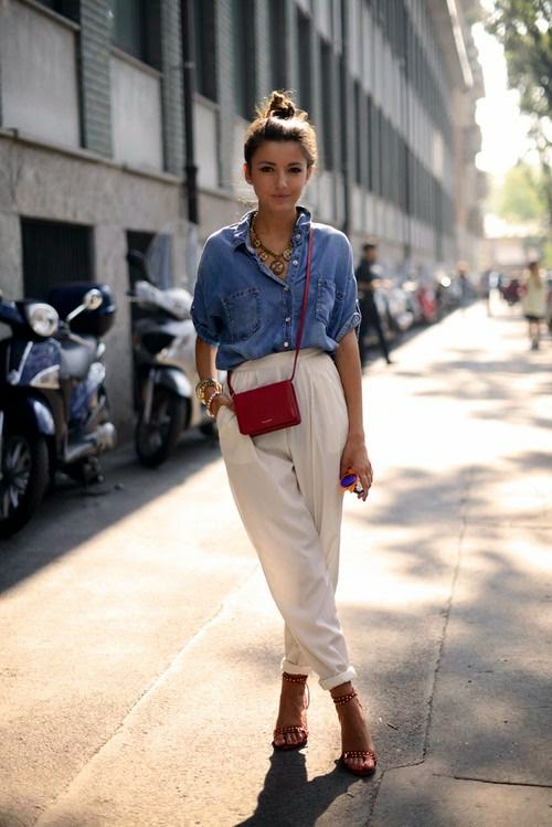 Если вы комбинируете джинсовую рубашку с такими же по цвету джинсами, ваш образ может быть слишком однообразным, простым и даже старомодным. Поэтому противопоставляйте цвета. Уровень контрастности зависит от ваших предпочтений.
