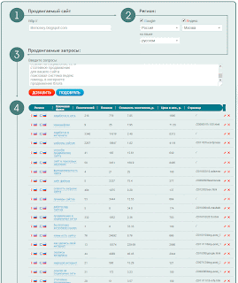 ваших первых нескольких запросов и самого продвигаемого сайта: