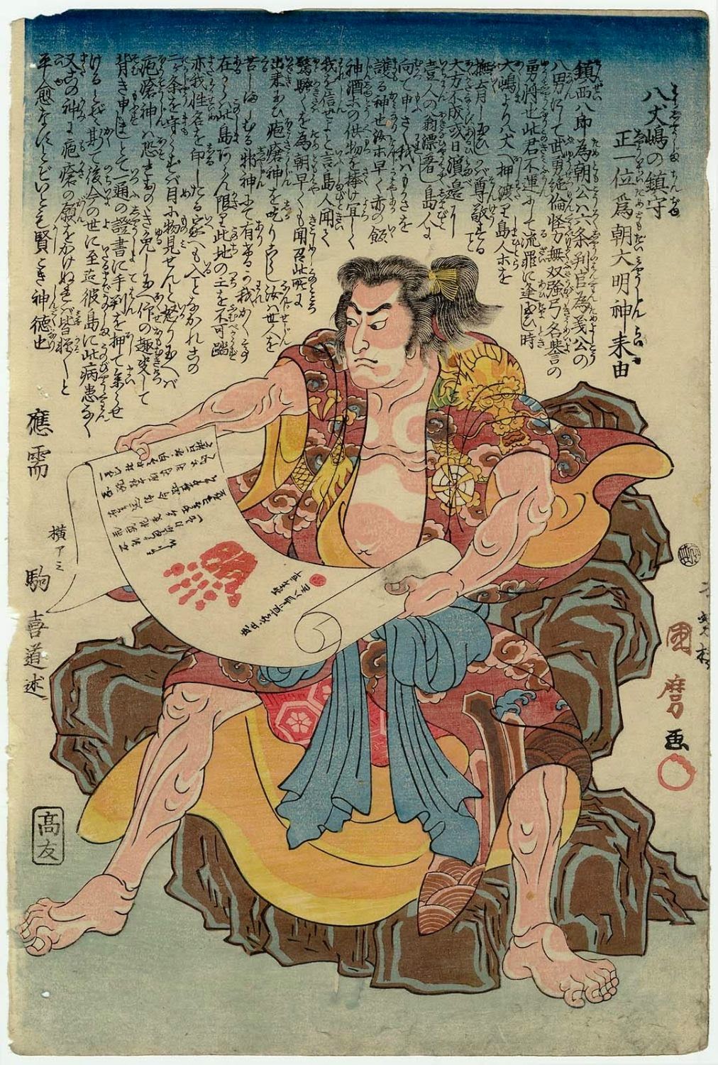 Кунимаро Утагава обладал, кроме изобразительного, еще и литературным талантом.