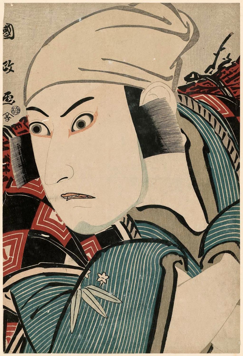 Кунимаса использовал максимальное приближение изображения героя в профиль или анфас, так, что оно полностью заполняло пространство картины.