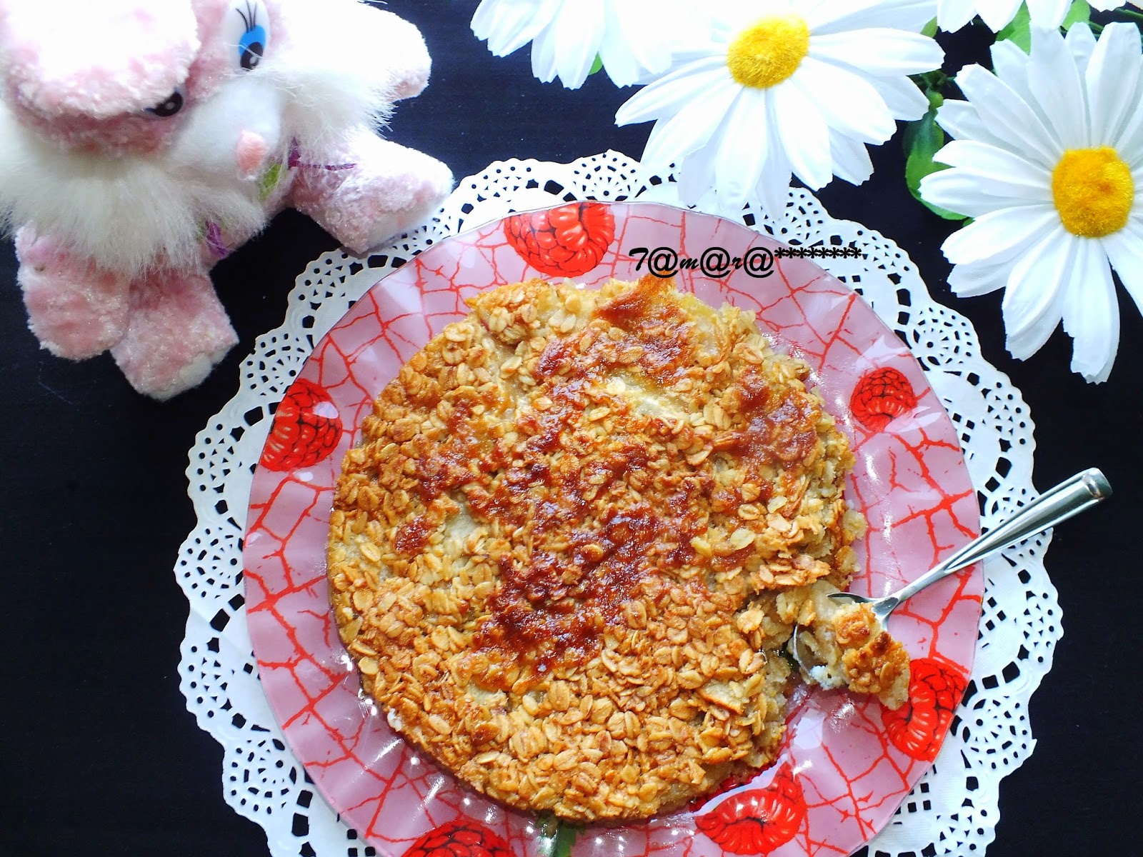 Всем привет! Предлагаю вашему вниманию рецепт низкокалорийного пирога. Вкусный, с хрустящим верхом и яблочной начинкой.  Масло растереть с сахаром, добавить хлопья. Отдельно взбить белки с щепоткой соли. Аккуратно смешать белки с масляной смесью. Выложить тесто на пирог. Выпекать при 200*С 40 минут. Приятного аппетита!