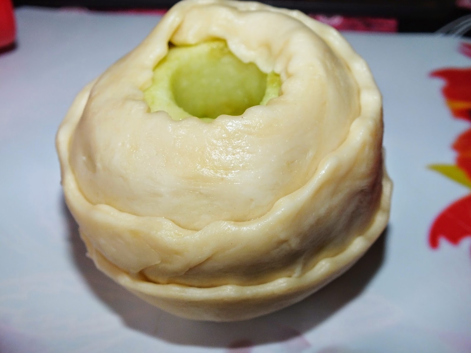 Каждую часть раскатать в длинный пласт и нарезать на тонкие полоски Сделать низ и верх из теста Яичный желток смешать с молоком и смазать тесто кулинарной кисточкой. Затем яблоки покатать в тарелке с сахаром. Я брала сахар Кристаллы. Выпекать в горячей духовке 30 минут при t-180*. По готовности остудить. Яблоки отлично пропеклись. Получилось очень вкусно! Приятного аппетита!
