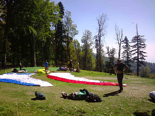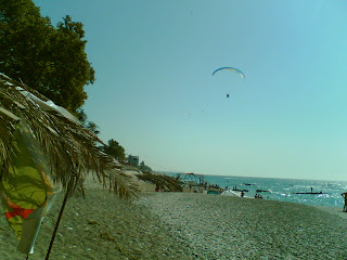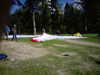 Везли минут 40 по красивейшим местам. Объяснили что надо делать: бежать изо всех сил к обрыву, когда земля под ногами пропадет, все равно бежать. Ни в коем случае не останавливаться. Надели амуницию, прицепили параплан, и стали ждать восходящего потока. Затем по команде побежали к обрыву. Бежать пришлось не просто, приходилось тянуть развернутое крыло параплана пересиливая ветер. И вот земля под ногами пропала, а я еще продлжаю бежать по воздуху, как было сказано в инструкции. Но уже пришло чувство полета. Затем инструктор сзади выровнял крыло, стабилизировал полет, и помог устроится по удобнее в "седушку", или как там она называется не знаю. И стало удобно, спокойно, и тихо, как и тогда, когда открылся купольный парашют, при прыжке с вертолета. Дальше уже было одно удовольствие. Прекрасные виды гор, города, моря. Потом инструктор дал самому поуправлять парапланом.
