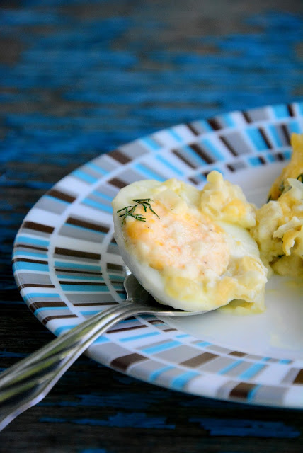 Вкуснейшее блюдо! В выходные на даче сделала эту яичницу, и даже не думала что будет настолько вкусно. Разлетелась за минуту!!! Чтобы приготовить эту яичницу, нужно немного больше времени, нежели на простую. Дело в том, что она делается из вареных яиц. Попробуйте обязательно, очень рекомендую!  Лук нарезать кубиком. Лук и чеснок (по желанию) обжарить на сливочном масле до золотистого цвета.Далее посыпать мукой, размешать. Влить молоко, добавить соль и перец.Проварить до загустения, при этом непрерывно мешая венчиком. Добавить мускатный орех и сметану, перемешать и снять с огня.Яйца выложить в смазанную форму для запекания.Залить кремовой заливкой.Сыр натереть на терке и засыпать верхним слоем. Поверх сыра разложить небольшие кусочки масла. Запекать в горячей духовке 12 минут при t-180*.Приятного аппетита!