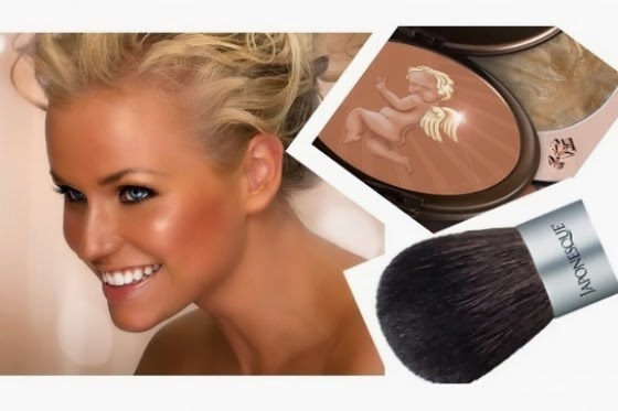 При нанесении бронзирующей пудры на лицо, помните и о румянах. Только совместно используя их в вашем макияже можно добиться нужного образа. Ведь загар лица неравномерный, его больше на скулах, надбровной зоне, линии роста волос, кончике носа и подбородке. Именно на эти участки и следует нанести румяна.