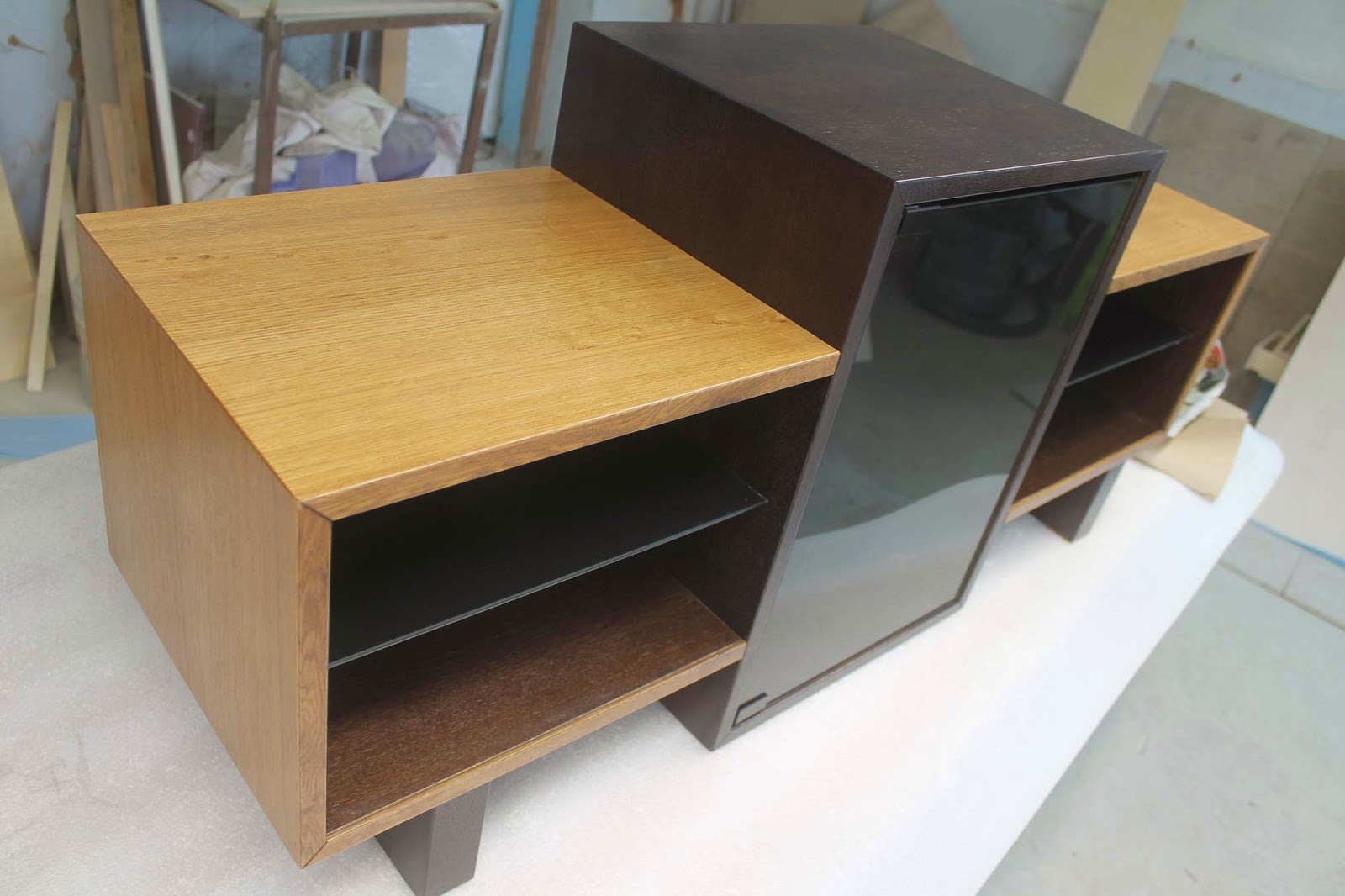 С изобретением телевизора вначале 20 века, автоматически возникла проблема: куда его поставить? Она решалась по-разному. Чаще всего на решения влияли размеры и пропорции техники. Первые телевизоры встраивались в комоды и продавались как мебель. В середине столетия телевизоры начали прятать в шкафы и серванты, этот способ размещения иногда используется и по сей день. Сейчас рынок TV техники очень быстро развивается, технические возможности и прогресс ускоряются на глазах. Современные телевизоры очень легкие, широкие и тонкие. Все это позволяет поставить их или закрепить где угодно. На потолке? Да не вопрос! В ванной? Да не вопрос! Но, так или иначе, необходимость складывать разную мелочевку не отпала. Куда поставить TV приставку? Куда прятать от любимого пса пульт? Куда поставить утюг в конце концов? Хотя… с утюгом возможно я перегнул. Для семьи из Москвы мы попытались решить эту проблему и сделали для них небольшую тумбочку. Процесс воплощения вы сможете увидеть в этой статье.