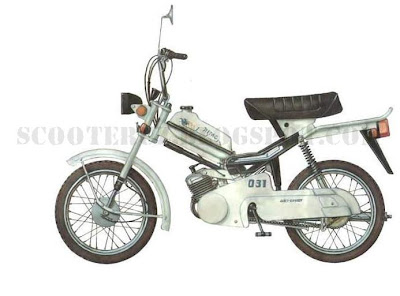 Термин мопед применяется в основном к 50 кубовымтранспортным средствам. Само слово мопед произошло от сочетания двух слов мотор и педаль. Хотя с педали запускались мотоциклы вплоть до середины двадцатыхгодов XX столетия, но мопедами их не называли. С того временикак для запуска моторов начали использовать рычажок кикстартер 50кубовые мопеды с кикстартером и приводом нацепи стали называть мокиком. Для мопедов и мокиках чаще всего применяется рамахребтового типа. Она имеет такой изгиб, что в образовавшийся между рулем исиденьем проем комфортно располагается водитель. Двигатель чаще всего подвешенпод раму, трансмиссия и органы управления как на мотоциклах.
