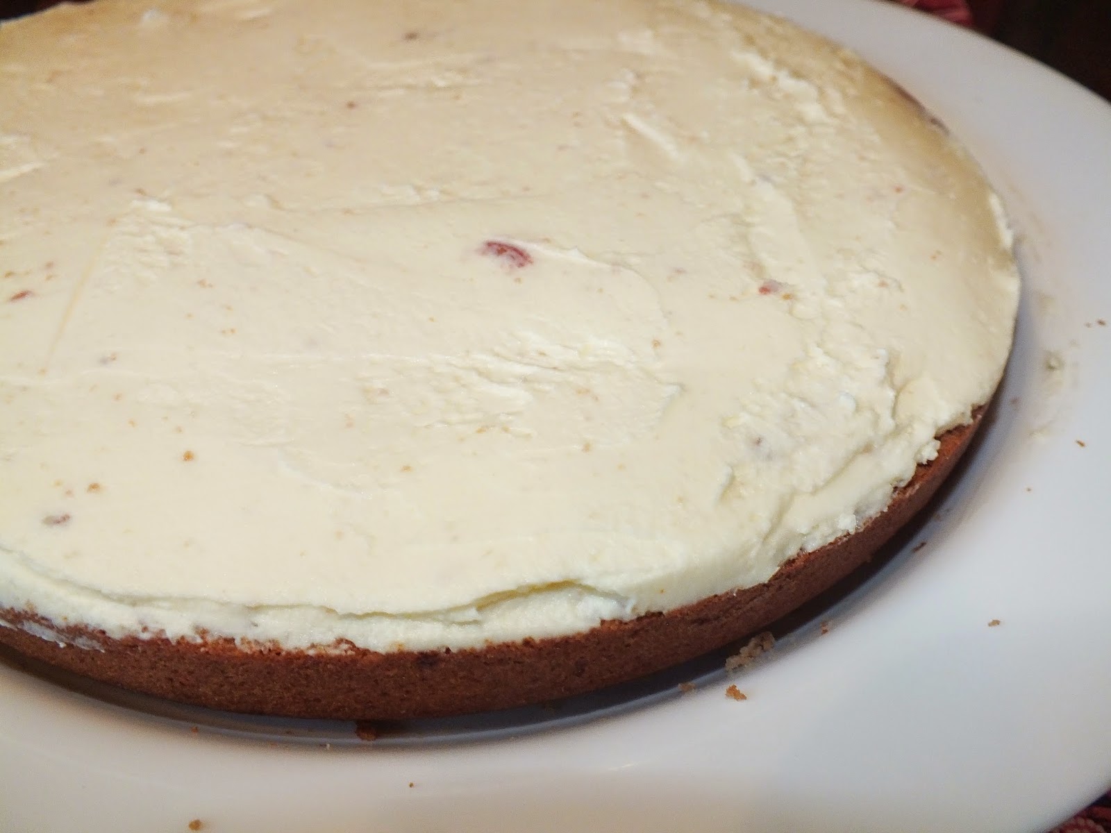 По готовности вынимаем кекс при помощи решетки для пара. Даем ему время полностью остыть Тем временем делаем крем, взобьем сливки с сахарной пудрой до пиков, подмешаем сливочный творожный сыр Остывший кекс разрезаем на 2 частиПромазываем кремом, накрываем второй частью. Сверху я полила кекс глазурью, сделанной из растопленного белого шоколада и сливок. Все очень просто, но так вкусно! Приятного чаепития!