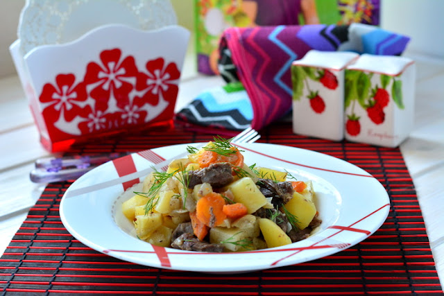 Я готовила это блюдо раньше, но немного по-другому. Очень интересный вариант получился с солеными огурцами. Именно огурцы придают мясу необычную пикантность.