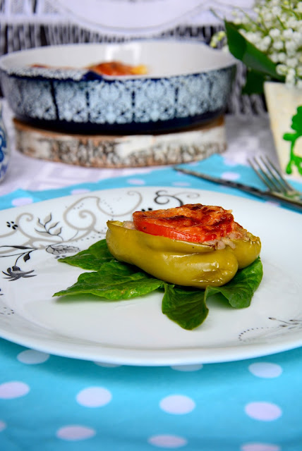 Предлагаю вкусное мясное блюдо из фаршированных перцев, которые запекаются в духовке под сырной шапочкой.  Мясной фарш смешать с рисом (можно добавить по желаю лук). Посолить, добавить перец или приправу по вкусуПерцы разрезать на половинки, удалить семенную коробкуНаполнить перцы мясной начинкойСмазать сметанойНакрыть кружочками помидоров.Засыпать тертым сыром. Запекать до румяной корочки при t-180*. Приятного аппетита!