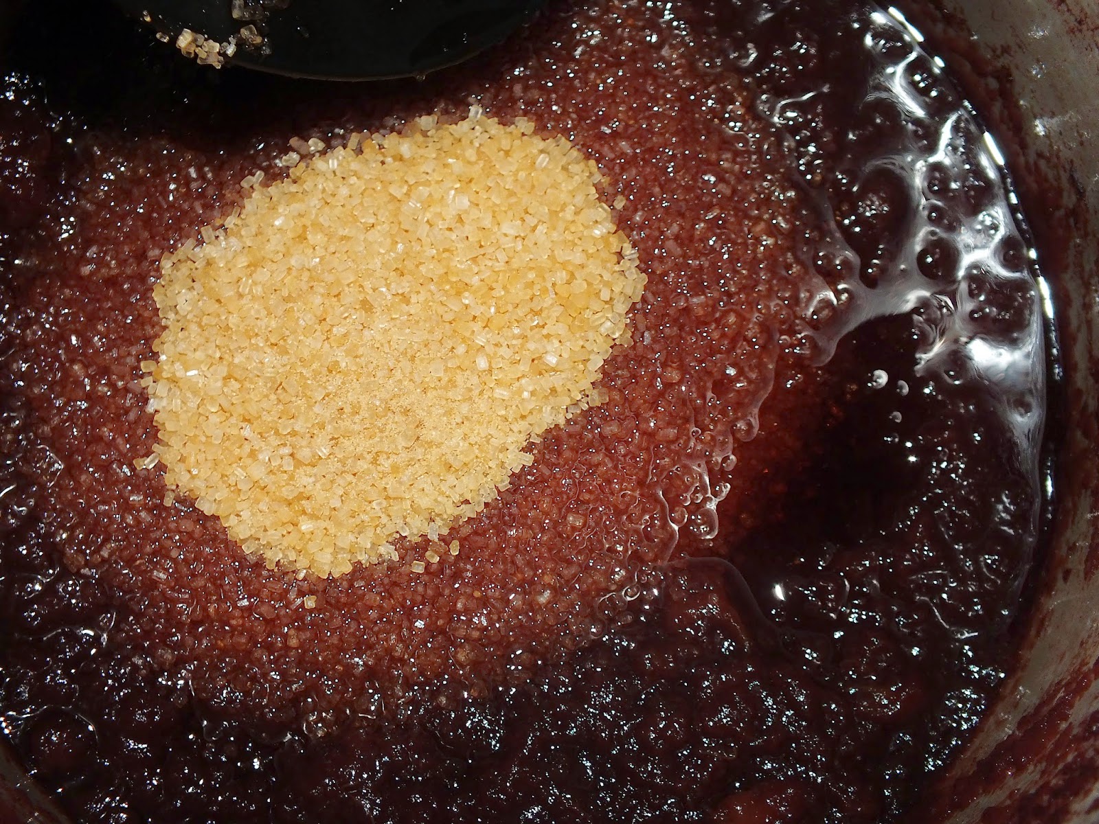 Как только яблочная масса разварится, снять с огня, добавить коричневый сахар