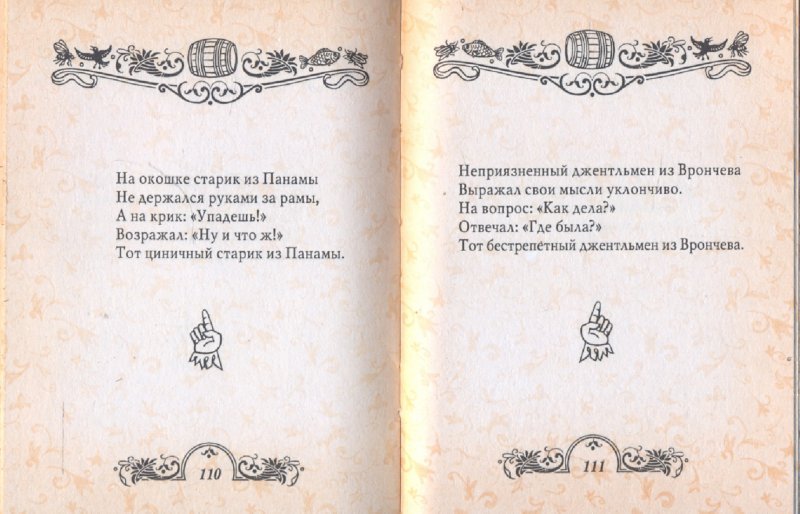 Издавна в ирландском графстве Лимерик сочиняли шуточные короткие стихи. Вроде этих: Дженни кормила свинью по утрамТидалам-там, тидалам-там.И если б не эти копытца на ножках,Если б не чепчик, не ленты, не брошки - Не различили бы двух этих дам.
