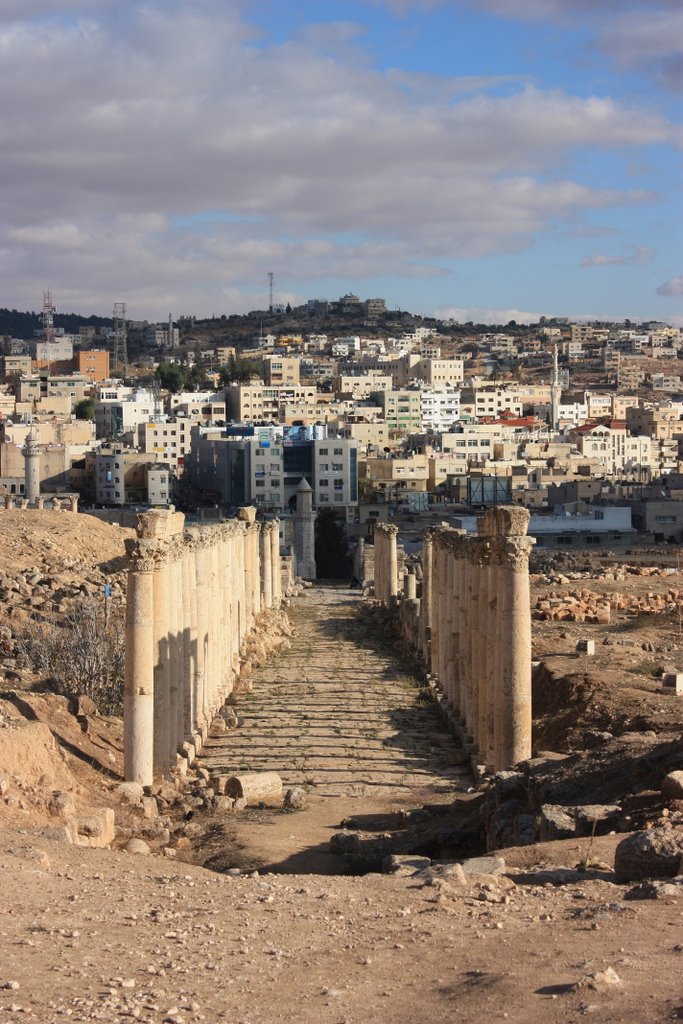 Главная улица Джераша - CARDO MAXIMUS длиной 800м. Вдоль нее, создавая бесконечный коридор, выстроены колонны. Подобным образом в древности выглядели центральные улицы большинства римских городов. Камни, которыми вымощена Кардо Максимус, уложены не под прямым углом, а по диагонали. Так римская инженерная мысль боролась с тряской на дорогах. Кардо Максимус - будто проход между мирами. По одну сторону за ней новый город, по другую - тысячелетние здания. А впереди только новые и новые колонны и мостовая, помнящая спешку колесниц и хранящая их отметины.