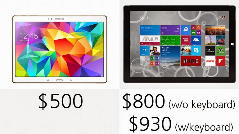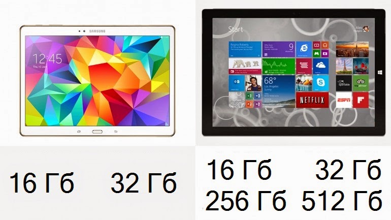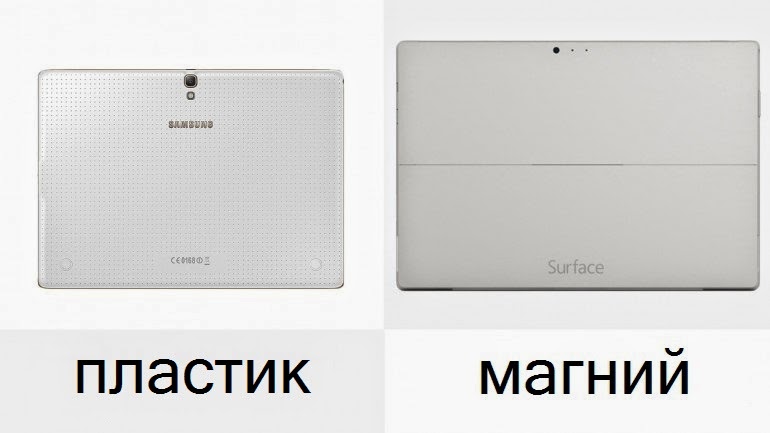Тэги: смартфон, сравнение Сравнение планшетов Samsung Galaxy Tab S 10.5 и Surface Pro 3.2016-05-21 19:50:00... Nokia на Lenovo., Сравнение смартфонов Samsung Galaxy ... + развернуть текст сохранённая копия ![]() Планшет Samsung Galaxy Tab S ещё не стартовал в продажах, а специалисты интернет издания gizmag, продолжают сравнивать топовые планшеты, которые уже давно расположились на рынке. Тут в основном будет сравниваться две модели к которым можно подключить клавиатуру и использоваться в виде ноутбука. И кто знает лучше гибридного ноутбука от Microsoft? Давайте дальше рассмотрим и сравним планшеты Galaxy Tab S 10,5 и Surface Pro 3, кто из них интереснее и чьи характеристики лучше. Размер.![]() Размеры этих устройств даже близко не совпадают. Pro 3 больше на 14 процентов и на 18 процентов шире и на 38 процентов толще, чем Galaxy Tab S 10,5. Имея такие размеры на Surface Pro 3 очень будет удобно работать в режиме ноутбука, однако такая возможность есть на обоих планшетах. Очень маленькая толщина Tab S делает его особо привлекательным относительно других моделей, ведь при толщине в 6,6 мм (0,26-дюйма), это действительно невероятно тонкий планшет. Вес.![]() Galaxy Tab S также очевидно очень лёгкий, его масса на 42 процентов меньше, чем у планшета Pro 3. Хотя стоит заметить, что Pro 3 больше смахивает на полномасштабный ноутбук. Корпус.![]() Surface Pro 3, вероятно, был бы немного легче, если Microsoft сделал бы его из пластика. Вместо этого он делает корпус из магния, что придаёт планшету более премиальный вид. У Галактики Tab S задняя крышка покрыта искусственной кожей, отделка очень похожа на смартфон Galaxy S5 , но имеет более прочную конструкцию, чем последний флагманский телефон. Клавиатура.![]() Microsoft выпуская планшет сразу подразумевал, что устройство будет снабжено док-клавиатурой и будет использоваться , как ноутбук. Поэтому компания Samsung поняв, что ей придётся конкурировать с такого вида гибридами, тоже выпускает свою собственную Bluetooth клавиатуру, которая послужит в сборе с планшетом, как крышка для своего нового планшета. Цвета.![]() Samsung предлагает два варианта цветов для покупателей на Tab S, в то время, как у конкурента цвет ограничен одним серебряным оттенок. Размер дисплея.![]() 12-ти дюймовый дисплей Pro 3 по размерам на 34 процента больше, чем на Tab S с 10.5-ти дюймовым дисплеем. Тип дисплея.![]() Samsung провёл большую рекламную акцию о том, что новый дисплей будет иметь стандарт Super AMOLED на Tab S. Во время просмотра видео высокого разрешения было заметно, что изображение имело более высокую контрастность и чёрные цвета выглядеть сногсшибательно, но существенно изображение не отличалось от видео просмотренного на других планшетах с высоким разрешением дисплея. Разрешение дисплея.![]() Плотность пикселей у Tab S на 33 процента больше, что делает его значительно контрастнее. Что касается Surface3. Во-первых, вы можете отдалить дисплей подальше от ваших глаз (особенно в режиме ноутбука), что позволит снизить меньшую плотность пикселей, визуально. Дисплей Surface Pro 3 также использует технологию субпиксельного сглаживания ("ClearType"), что делает текст на его экране немного контрастнее. Стилус.![]() Наряду с крышкой клавиатуры, планшет Pro 3 располагает использование стилуса, что является еще одной неотъемлемой частью видения компании Microsoft линии планшетов Surface. Обновленная «ручка» у Surface 3 имеет кнопку на верхней части, позволяющую открывать приложение OneNote от Microsoft просто одним щелчком. Сканер отпечатк