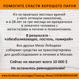 Предлагаю всем благотворительным организациям бесплатное размещение в рубрике 300 х 300. С вас - добрые намерения и баннер в соответствии с правилами. Благотворительные баннеры публикуются только при наличии всей конкретики - кто, где, когда, куда, сколько. Публикация - когда будет возможность.