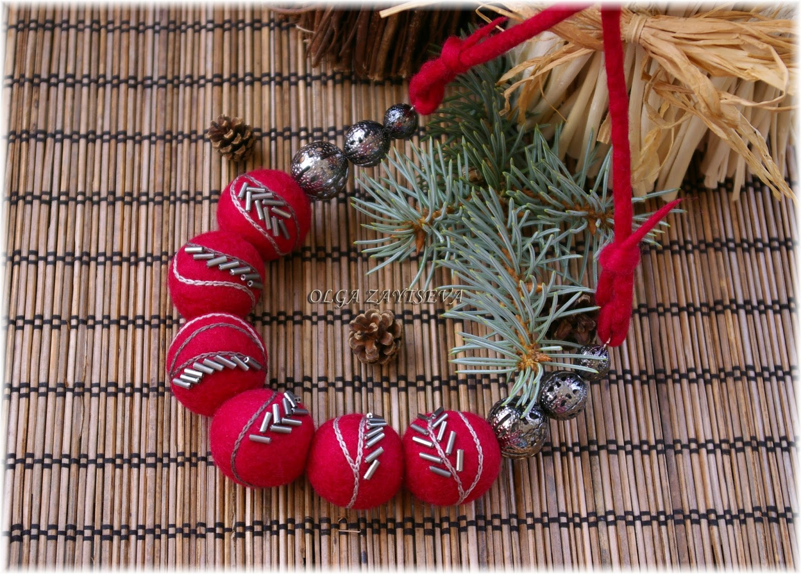 Бусы легкие, очень приятные на ощупь, поскольку сделаны из 100% тончайшей мериносовой шерсти.
