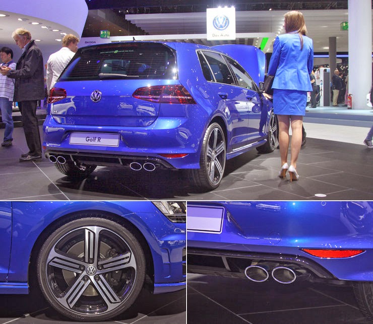 Новый Golf уже давно продается, однако фанаты автомобилей почему-то с большим интересом идут на стенд Volkswagen. Их понять можно — немцы показали в этом году не просто Golf, а «супер Golf». Который получил название Golf R. Внешне эта машина отличается от «простых» Гольфов стильными 18-дюймовыми дисками, четырьмя выхлопными патрубками и новым аэродинамическим обвесом, который буквально преобразил Golf. Плюс пониженная на 20 мм подвеска, спортивные кресла в салоне, новое рулевое колесо и прочие атрибуты «гоночного» автомобиля. Но главное тут все же под капотом — там скрывается мотор объемом... два литра. Всего? Но не тут то было. При своих двух литрах Golf R выдает 300 л.с. и 380 Н∙м. (для сравнения, предыдущая версия Golf R имела на 30 «лошадок» меньше, к тому же она была на 65 кг тяжелее). А помогать реализовать всю эту «дурь» будут 6-ступенчатая DSG, муфта Haldex пятого поколения, адаптивная подвеска и электронная имитация блокировок дифференциалов, которая будет сразу на двух осях.