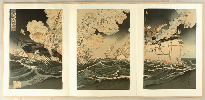 В конце 19-го века особой популярностью у японцев приобретают гравюры на военную тематику.