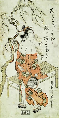 Кроме того, в 1750 -1760 годах художник выпустил роскошные полихромные гравюры бэнидзури-э в зелено-розовых тонах.
