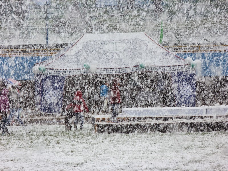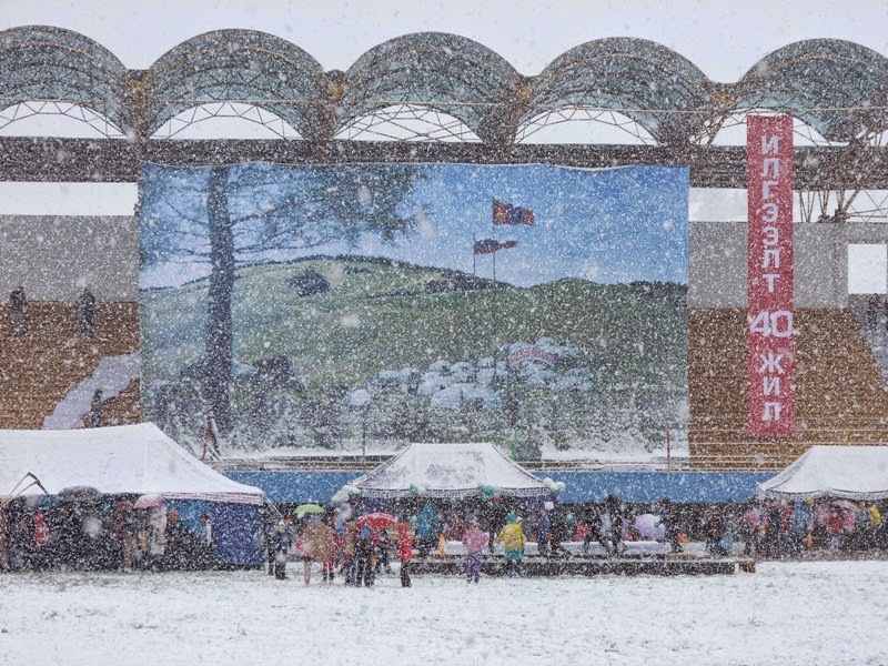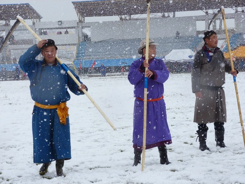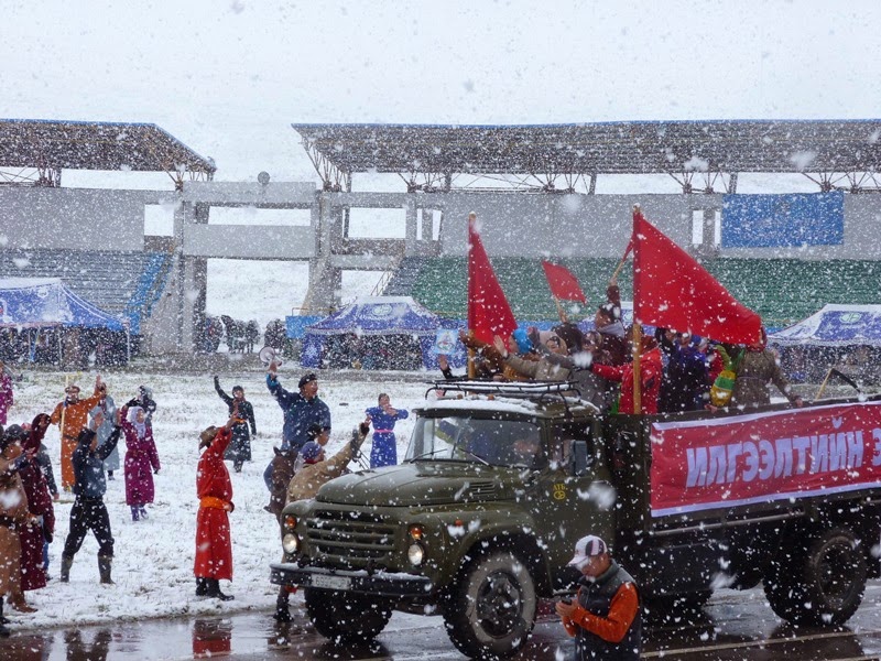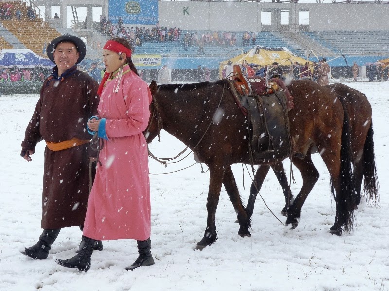 через весь стадион со своим спутником, изображая жизнь монгольских скотоводов.