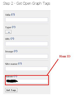 Далее нам нужен идентификатор ID профиля. Его можно взять на это же страничке, только чуть ниже формы генерации кнопки. Рис. 3 В поле Admin будет необходимый идентификатор профиля (свой ID я закрасил в целях безопасности:))) Теперь осталось совсем чучуть)). Между тэгами <head><head/> разместить ниже приведенный код, который инициализирует кнопку Like, и функцию отслеживания, которая будет передававать данные в аналитикс _ga.trackFacebook();Ее описание есть в файле ga_social_tracking.js
