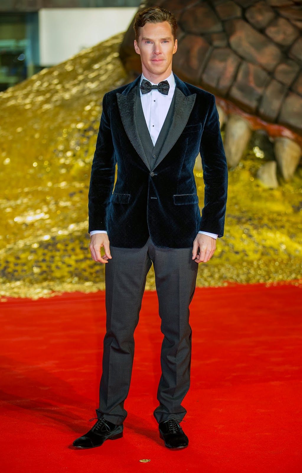 Тут все просто - брэндовый костюм и не менее брэндовые туфли. Цветовые предпочтения неизменны - серый и черный, хотя нам очень нравится зеленый бархатный пиджак с премьеры "Хоббита". Его костюмы для выхода в свет тоже можно разделить на 2 группы. Черные смокинги black tie с атласными лацканами — для ковровых дорожек, а остальных случаях - что-то попроще, но не менее классическое и несомненно в английском стиле. В последнее время Бенедикт полюбил дизайнера Spenser Hart, это и пиджаки, и рубашки, а в большинстве случаев - полные комплекты. Как вы уже наверное знаете, именно костюмы в этой марки носит его герой Шерлок Холмс. По признанию актера, в них трудно сидеть и есть, зато как сидят!