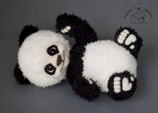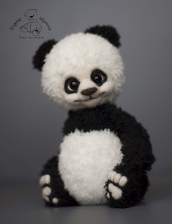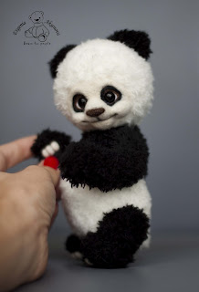 This is my new kid-panda. He is plump, good and very cute baby. With this skin he isn't afraid of the first autumn chill. CROCHETED Filling: wool, steel pellets. He has glass eyes, 5-way disk-jointed. His face and paw pads are needle felteds. ADOPTED 190$ UPS shipment included (If you are using PayPal the cost will vary)