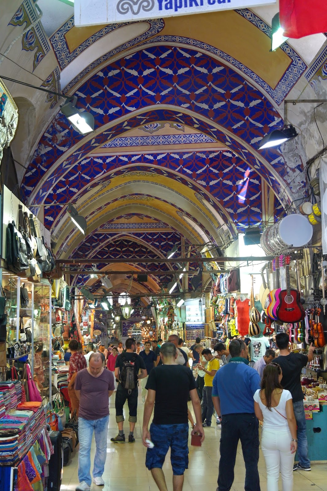 Доброго времени суток всем! Сегодня речь пойдет о Стамбуле летом. А чтоб вы понимали, Стамбул летом и зимой - это два разных города. Прилетели мы туда всего на 3 дня, просто чтобы досмотреть то, что не увидели в прошлый раз, ну и сладостей купить, естественно.  Началось все с того, что наш вылет из Цюриха задержали, а потом, как полагается, посадили самолет в самой дальней части аэропорта, задержали багаж и т.д. и т.п. Клик. В день отлета оставили чемоданы на ресепшене и отправились на Гранд Базар, который не посетили зимой. Там нас тоже ожидало разочарование. Вместо прилавков со специями, сладостями и прочими приятными турецкими вещичками, нас ждал рынок ширпотреба по баснословным ценам.  | | "Медный чайник или стеклянную рюмочку?") |