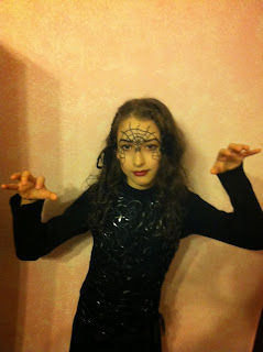 Маскарад Хэллоуина любят все. В этот вечер можно подурачиться и нарядиться как душе угодно. Выбор костюмов Halloween велик, и самое главное – что чем страшнее, тем лучше. Я живу в Италии и здесь особенно любят этот праздник. Впрочем, может, нужно уточнить, что итальянцы в принципе большие любители всяких праздников, и особенно маскарадов. Витрины магазинов пестрят самыми разнообразными костюмами, париками и масками. Только вот в этом году, я к празднику готова не была. Думала – пройдет так себе незаметно и все. Не тут-то было! Наши активные итальянские мамочки решили в самый последний момент организовать праздник-маскарад детям. Пригласили и меня. Сказали мне об этом утром, когда я отводила детей в школу. Маскарад должен был состояться вечером. Конечно, у каждой порядочной итальянской семьи, особенно с детьми, есть как минимум колпак ведьмы или маска вампира, и у меня тоже есть. Но! Мои костюмы Halloween находились у подруги в другом городе, времени ехать забирать не было. Идти покупать новые, честно говоря, жаль было денег. Но я человек креативный и знаю, что то, что можно купить, иногда можно сотворить самому из того что было, как говорится. Итак, у меня девочка и мальчик. С дочкой оказалось – совсем легко! Ведьмочка. Из любой девочки можно создать Кикимору, но моей дочке 10 лет и хотелось сделать ее не просто ведьмой, но эдакой красивой гламурной ведьмочкой. Оказалось, что даже был выбор одежды: одно черное платье, второе черное платье, туника, юбка... Остановилась я на черном платье. .JPG) Мальчик 7 лет. Тут оказалось сложней! Во первых он категорически отказывался от макияжа на лице. Ну, значит, возьму белую простыню, прорежу дырки для глаз – будет привидение. Однако потом он признался, что боится, что макияж останется навсегда. Пришлось мне продемонстрировать как с помощью специального средства он легко смывается. Сначала была идея создать вампира. Но обычно вампир имеет накидку, которой у меня не нашлось. И тут мне попалась на глаза черная туника дочки с капюшоном. Образ практически создан – смерть. Мешала только красная надпись I<3NY, поэтому сверху пришлось надеть другую черную футболку. Но пока это были просто дети в черном. Чтобы сделать из них Ведьму и Смерть, я нашла свою косметичку. Черный карандаш для глаз. Бледная блеск-пудра для тела. Сыну нарисовала два черных круга вокруг глаз ( и он получился пандой), затем черный нос (опять панда...) и нарисовала зубы – получилось нечто более похожее на зашитый рот, но страшно! Сыну результат понравился. Дочке нарисовала паутину на лбу с паучком на переносице, и продолжение паутины под глазами и на скулах. Чуть подкрасила губы красной помадой, обвела тем же черным карандашем. Дочка каждые пять минут ходила любоваться на себя в зеркало! Чтобы докончить образ, я порезала старые черные колготы на ленточки и вплела их в тонкие косички, на остальные волосы нанесла пенку и взъерошила как могла.