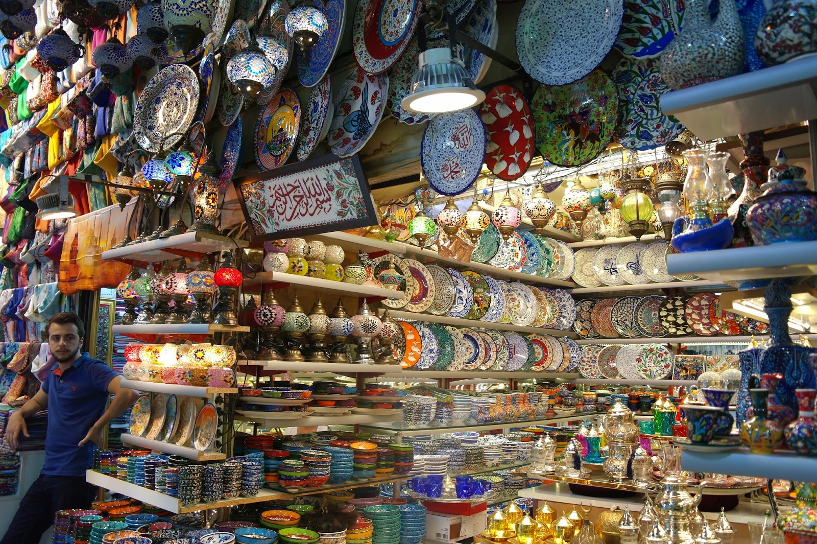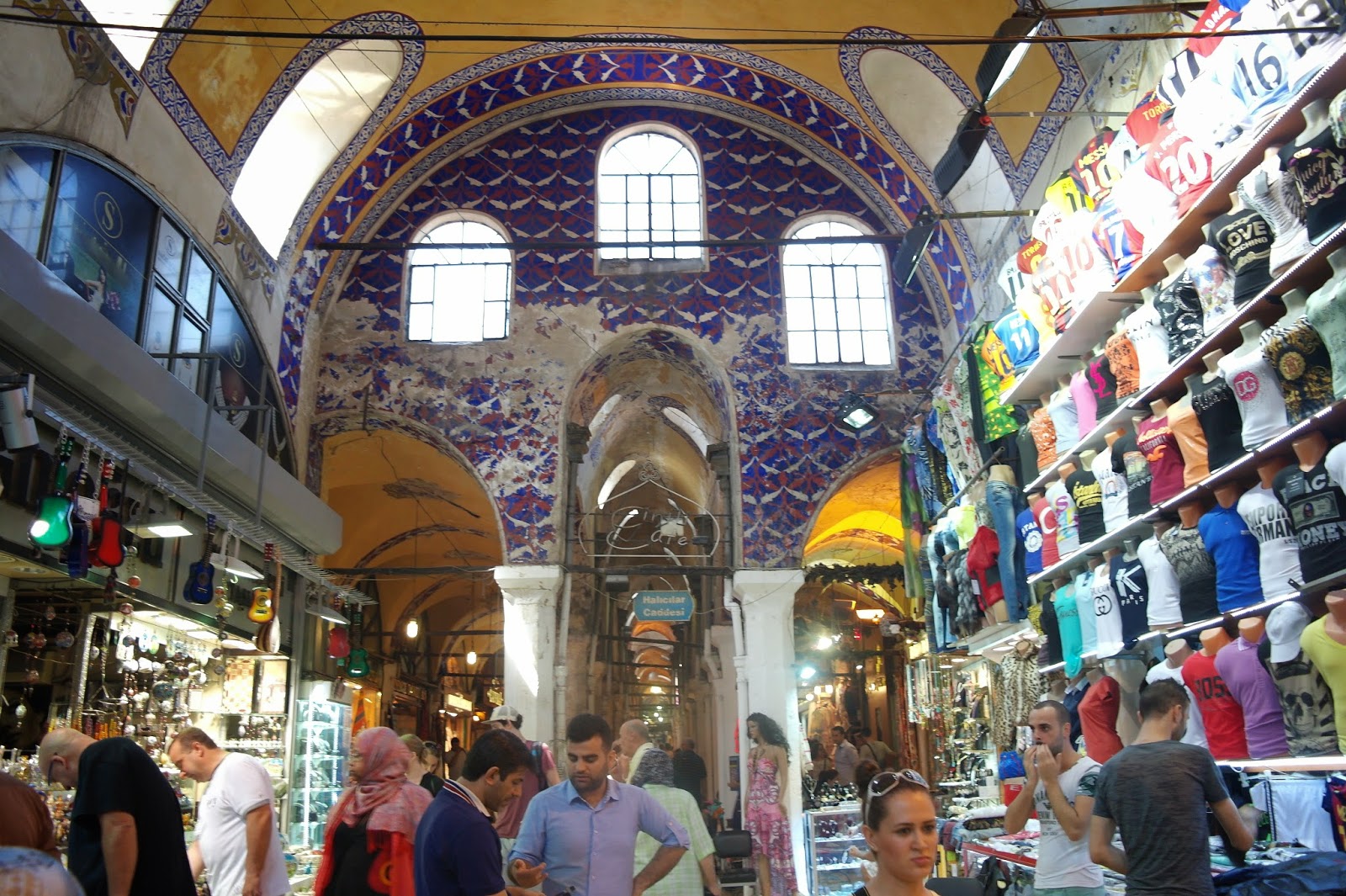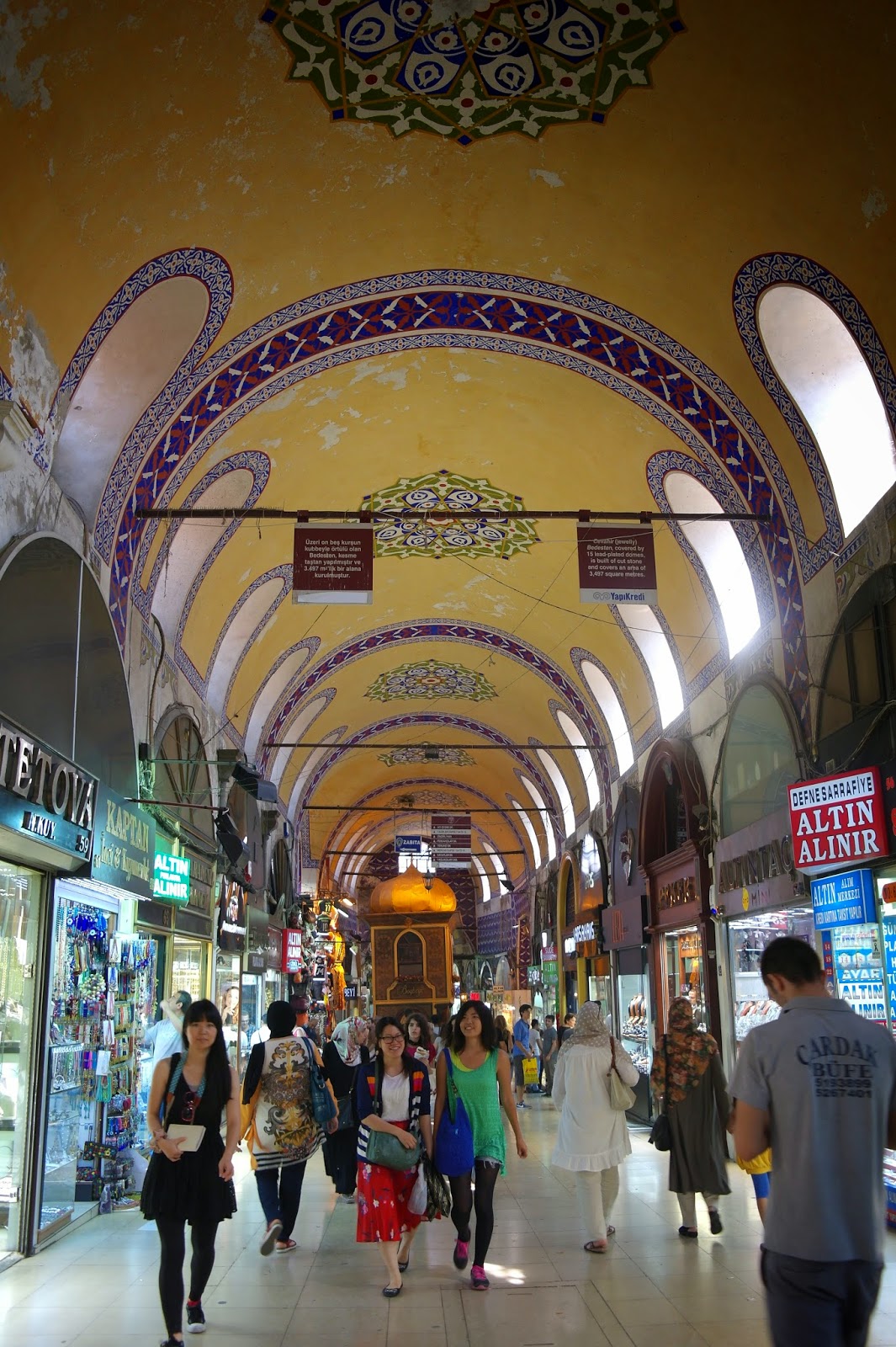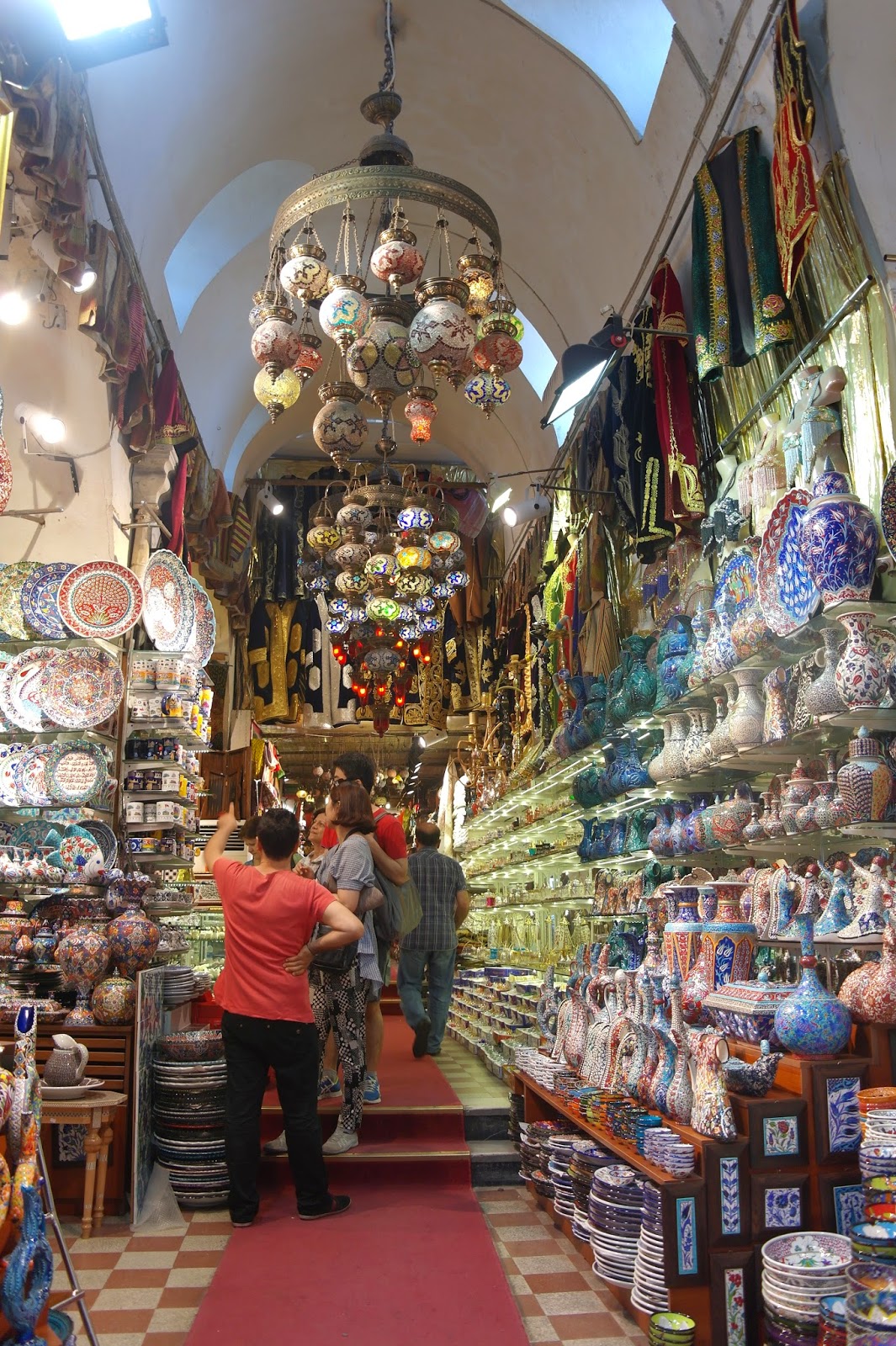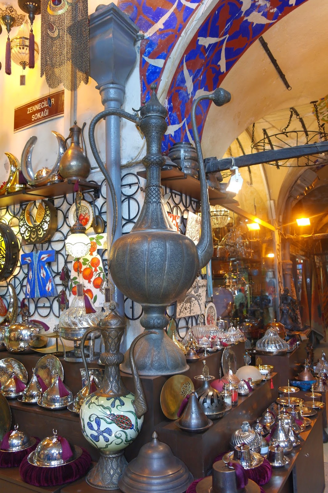 Доброго времени суток всем! Сегодня речь пойдет о Стамбуле летом. А чтоб вы понимали, Стамбул летом и зимой - это два разных города. Прилетели мы туда всего на 3 дня, просто чтобы досмотреть то, что не увидели в прошлый раз, ну и сладостей купить, естественно.  Началось все с того, что наш вылет из Цюриха задержали, а потом, как полагается, посадили самолет в самой дальней части аэропорта, задержали багаж и т.д. и т.п. Клик. В день отлета оставили чемоданы на ресепшене и отправились на Гранд Базар, который не посетили зимой. Там нас тоже ожидало разочарование. Вместо прилавков со специями, сладостями и прочими приятными турецкими вещичками, нас ждал рынок ширпотреба по баснословным ценам.  | "Медный чайник или стеклянную рюмочку?") |