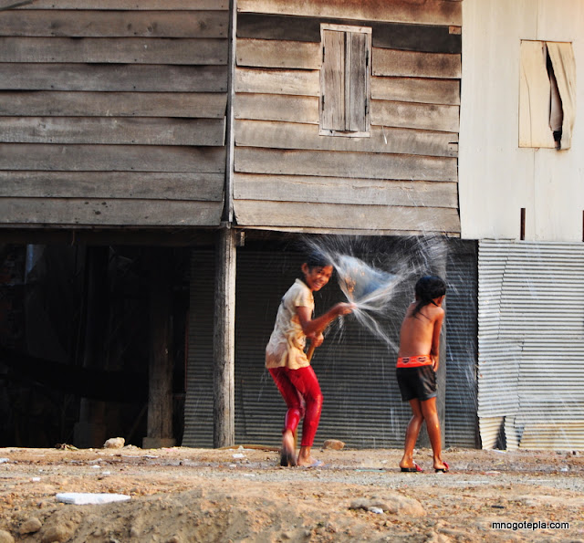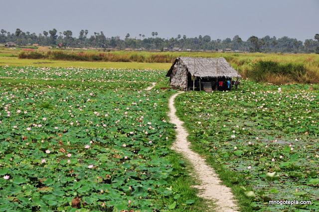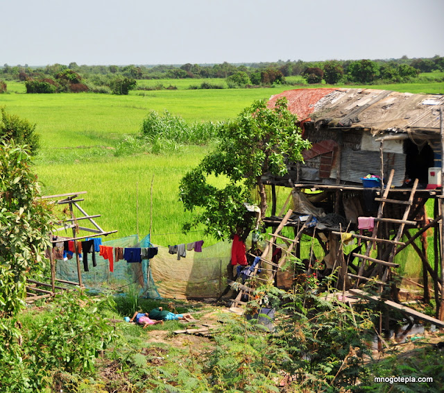 Великое множество камбоджийцев живёт в деревнях. Там они выращивают рис, ловят рыбу,шьют одежду,молятся Будде,пьют самогон... Что бы окунуться в этот колорит, достаточно отъехать 5-10 км от города. Например можно прокатиться до озера Тонлесап, что в переводе с кхмерского - "большая свежая вода", крупнейшего водоёма Индокитайского полуострова. В сезон дождей оно является частью водного пути до Южно-Китайского моря. Мы так и собирались добираться из Вьетнама в Камбоджу, но к сожалению вне сезона дождей глубина озера может не превышать одного метра и навигация затруднена. По дороге к озеру жизнь кипит ,"сколько червячков, мошек,букашек, козявочек, ползают, соревнуются, друг друга едят, улыбаются, шебуршат, кусаются, жужжат, прыгают, царапаются."