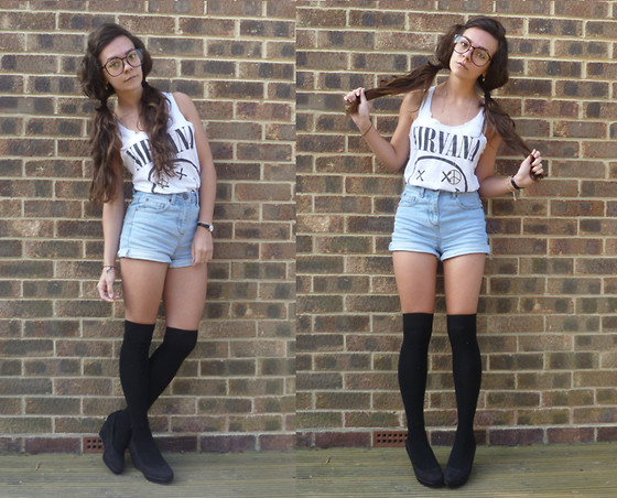 1. Дуэт джинсовых шорт и темных колгот ( Заметила закономерность англичанки не носят бежевых и телесных или это мне так показалось?)