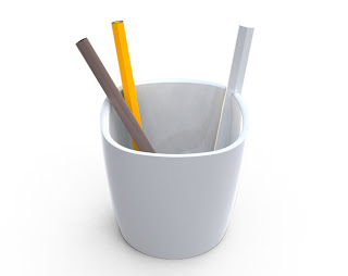 Наверное, его раздражают пустые стаканы для хранения канцелярских принадлежностей? Возможно, они выглядят, в его глазах, столь сиротливо что, он решил: