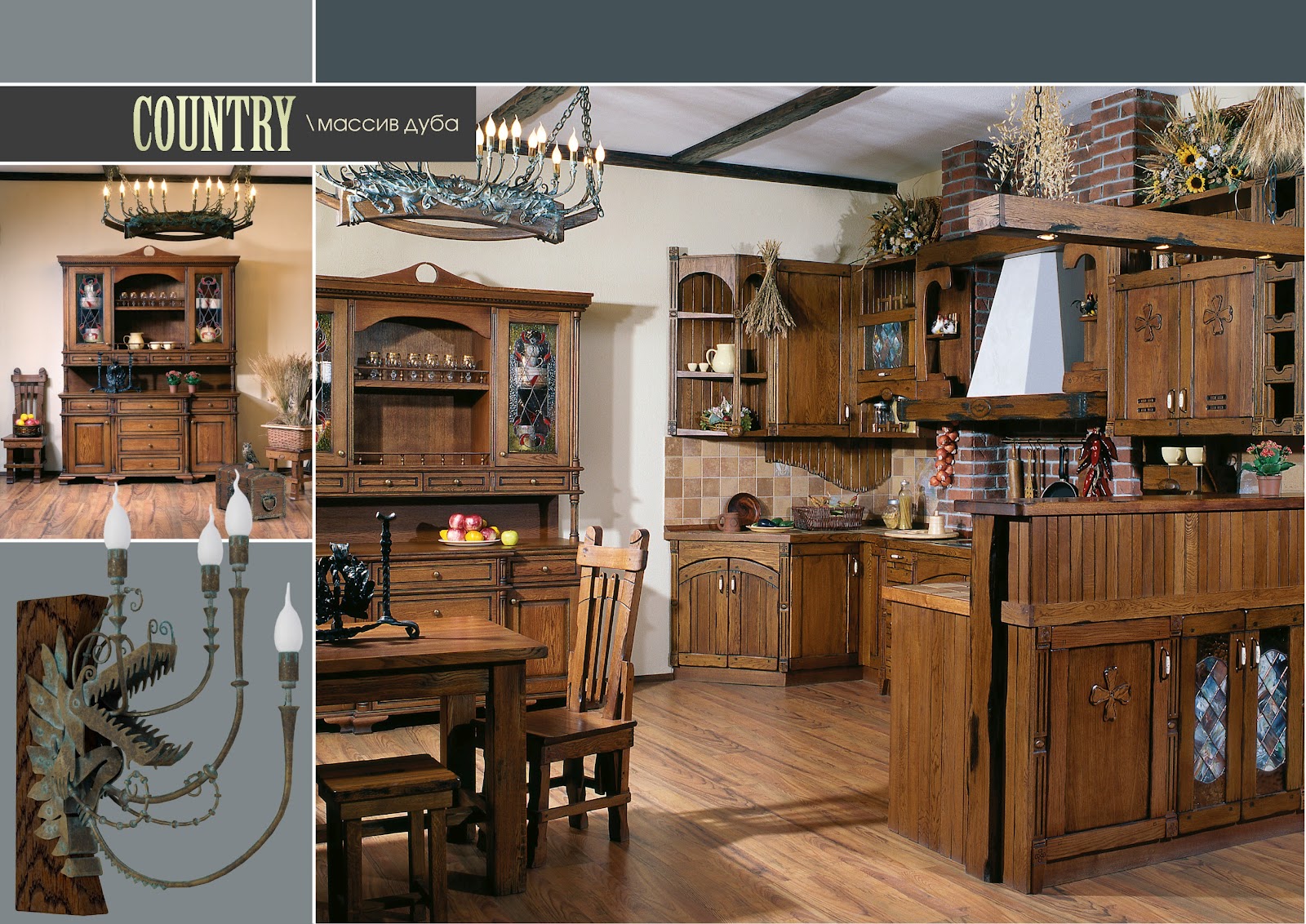 Мебель в стиле кантри на первый взгляд может показаться неуклюжей и старой, особенно тем, кто привык к современным высокотехнологичным предметам в стиле хай-тек. Но приглядевшись, любой человек, хотя бы немного обладающий вкусом, несомненно отметит, что эта поношенность и потертость придает мебели неповторимый шарм и колорит. При создании элементов интерьера в стиле Кантри, мы используем метод искусственного состаривания- древесина искусственно состарена и подчернена. Нанесенные потертости, трещины и сколы — все это придает мебели по-настоящему старинный вид.
