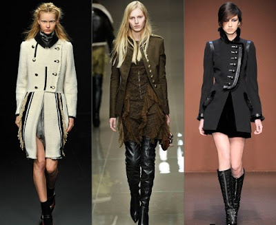 Если говорить о стиле, то по-прежнему приветствуется военный «милитари», включающий офицерские мундиры, куртки лётчиков и брюки-галифе.