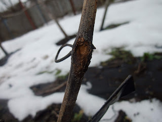 да и вообще спасение вот этого виноградника. Вот первый ряд, на котором растаял снег я уже и подвязал - пусть просыхает.