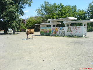 эта красивая лошадка наверное ждет автобус и желает покататься, так что если приедите к нам в гости не пугайтесь, это обыденая ситуация и местные жители оказывается к этому уже давно привыкли. Как я разговаривал со своей тетей, о она мне сказала, что раньше количество скота, который бродил по улицам была намного больше, а сейчас большинство змеиногорцев убрали скот, так как это стало ими экономически не выгодно, а может просто от лени.